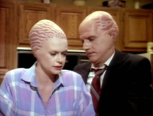 While I admire Clare for her strength and resilience facing this potentially deadly disease, I am simultaneously going to hell because, uh, her f—ing bald cap made me laugh and laugh laugh. She looked like a cast member of Fox’s forgotten gem Alien Nation.